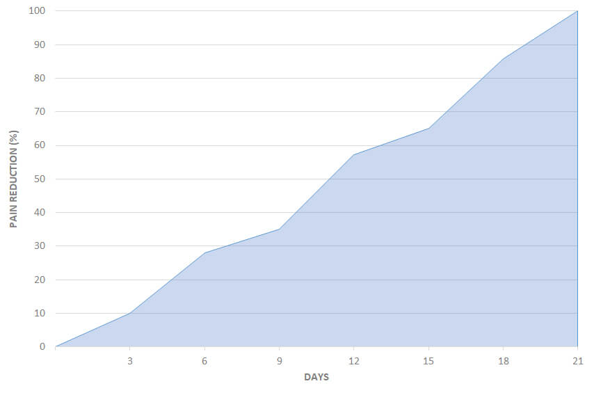 Resultat efter 3 veckor: smärtan minskade med 100%