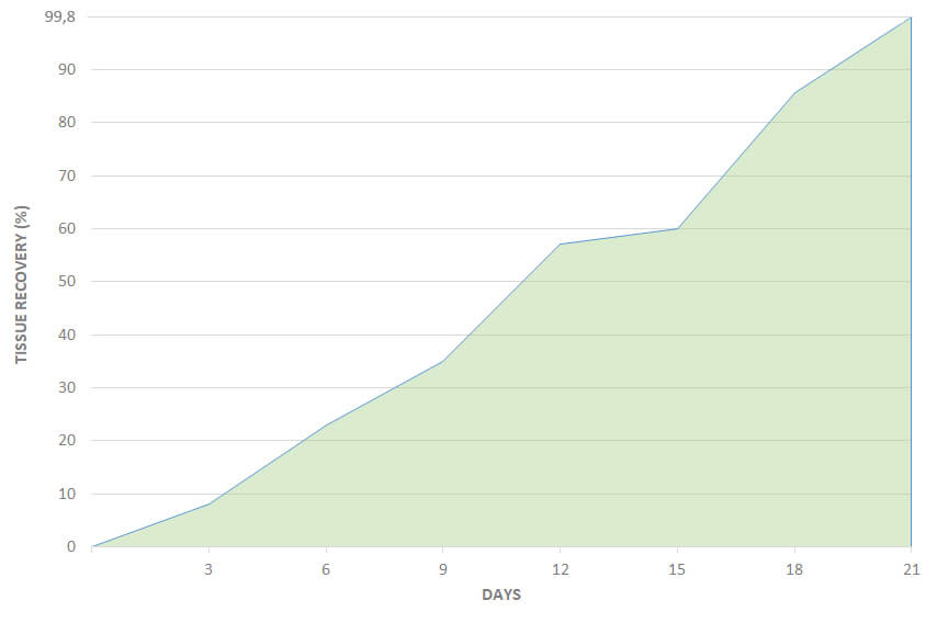 Resultat efter 3 veckor: vävnader regenererade i 99,8 %