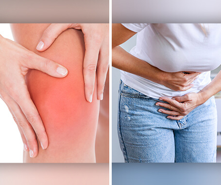 - smärta, svullnad, stelhet, domningar, förlamning och "knaster" i leder eller rygg